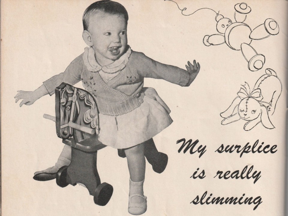 “My surplice is really slimming!”1946, American Thread Company.
