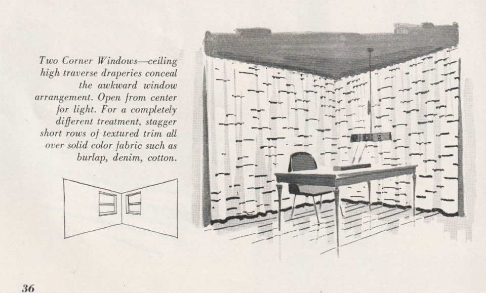 If your problem is two small windows, disguise that corner with giant drapes, with plenty of trimmings!