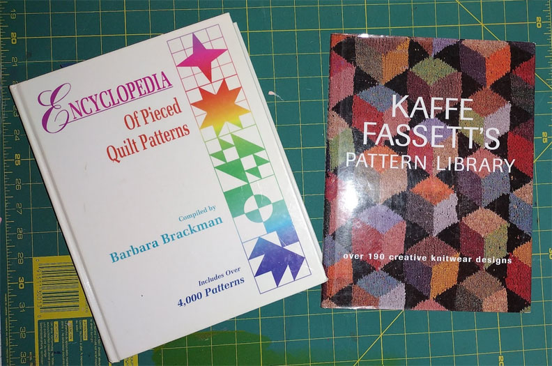 One area where I didn’t spend enough time was decluttering. That area of the chart should show negative numbers! Not only did I not declutter, but I brought a lot of new things into the house. There were two online auctions I couldn’t resist. At one, I was bidding on a very nice sewing table, and since I was going to have to go pick that up anyway, I also bought two six-foot bookshelves, stuffed with over 200 books on nature, quilting, and woodworking. The two books that I was really after were Barbara Brackman’s Encyclopedia of Pieced Quilt Patterns, and Kaffe Fassett’s Pattern Library; all the others were just a fun bonus.
