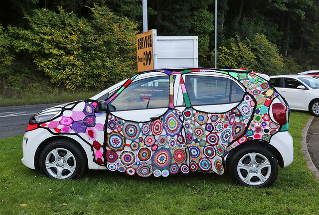 Let’s finish with some upbeat photos of yarn bombing. Yarn bombing at Selkirk by Walter Baxter is licensed under CC-BY-SA 2.0