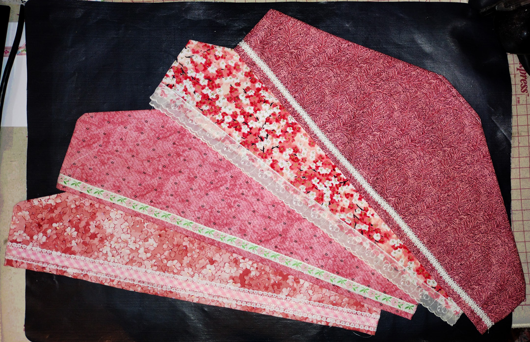 This year I watched a lot of YouTube videos and searched through a lot of books, but all the ideas I saw looked too time-consuming to make. Finally, in a Quick and Easy Quilting magazine from 1994, I found the perfect idea — hanger covers! You can either use them directly on the hanger to provide padding for a garment, or you can put them over top of a fragile garment to protect it. The designer, Linda Denner, described how to make a basic one from a fat quarter — but her genius idea was to dress it up with pieced scraps, which makes it perfect for quilters.