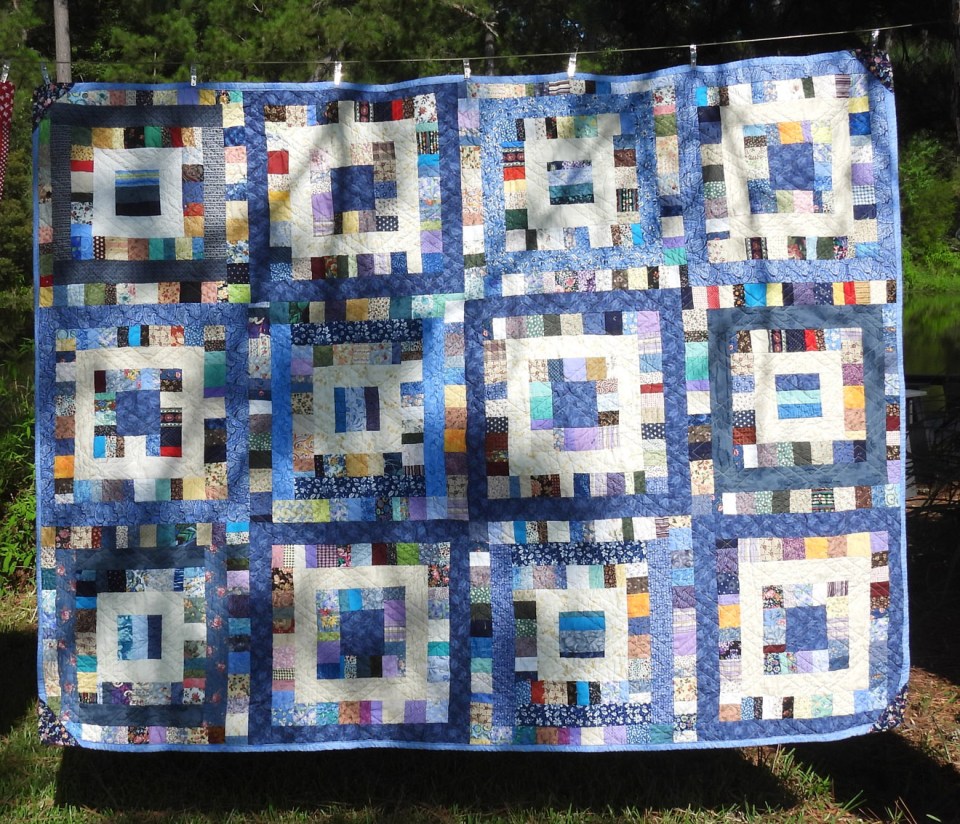 When I posted the blue and cream version in June of 2023, I noticed that one corner block was just way too blue, so I replaced it.