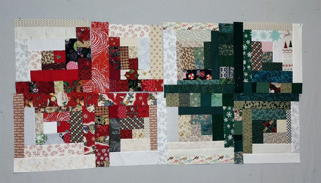 Christmas-y log cabin blocks from scraps.