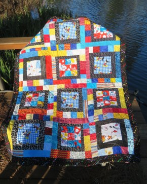 The spark for this baby quilt came from a big tub of donated fabrics. There were four Mickey Mouse 6-inch squares, two Dr. Seuss 6-inch squares, and a whole lot of Dr. Seuss… Continue reading